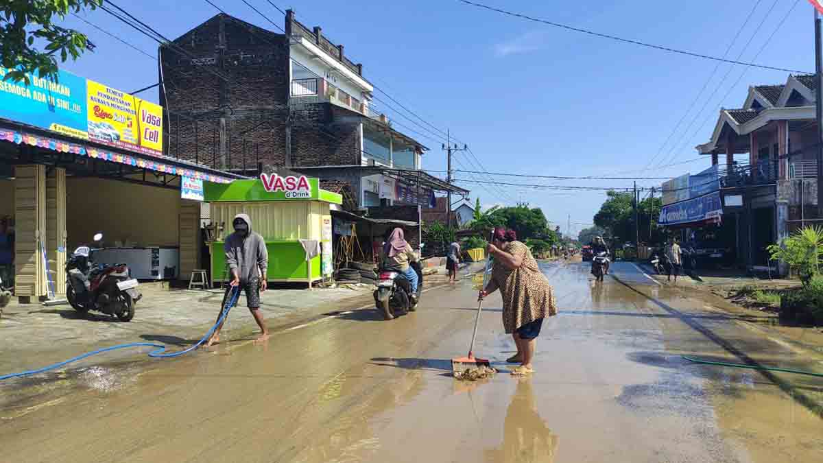Mereka melakukan kerja bakti gotong royong membersihkan sisa lumpur, kerikil, dan batang pohon yang menutupi jalan. Upaya ini dilakukan agar akses kendaraan tetap bisa berfungsi, meski dalam kondisi jalan yang sudah tidak mulus lagi.