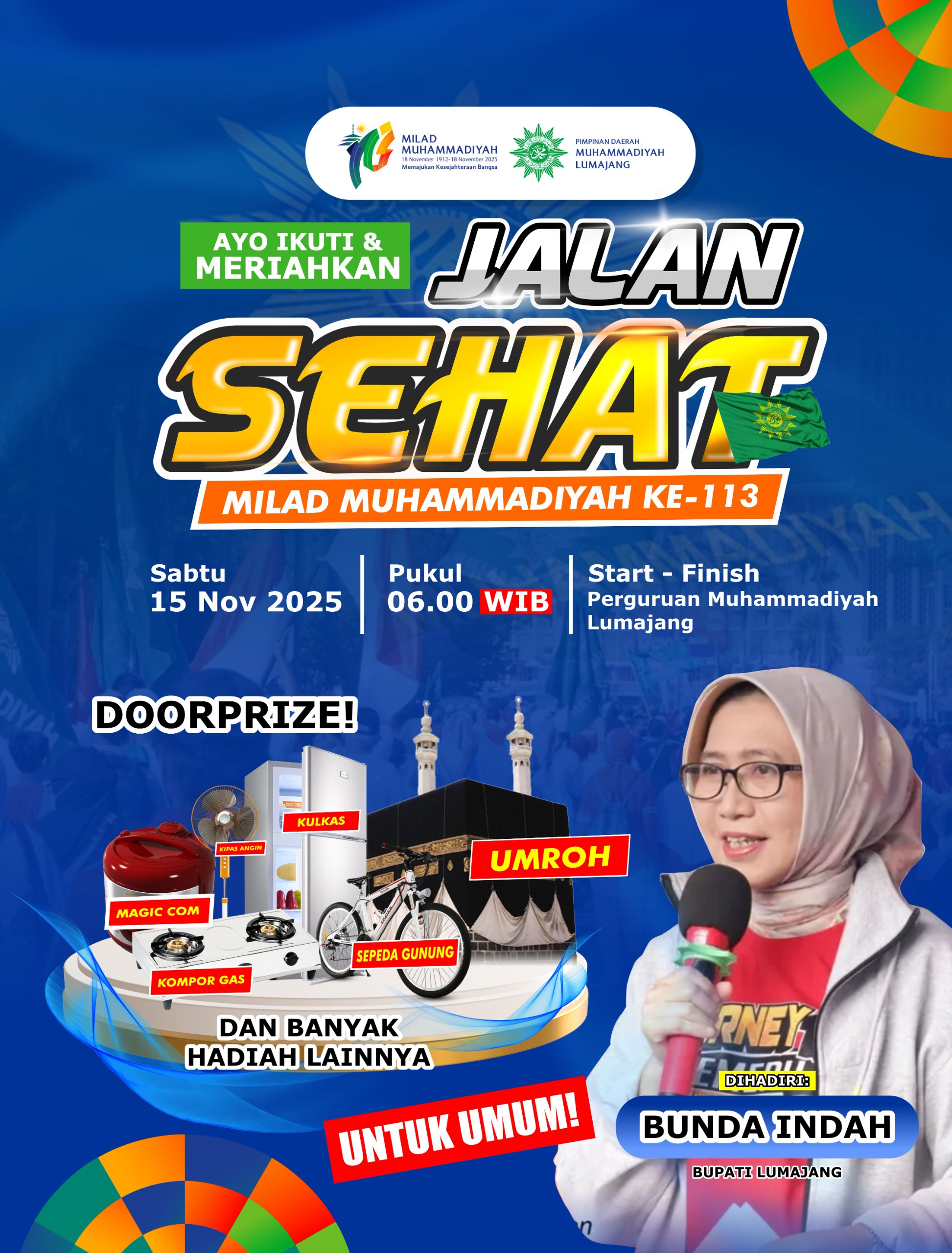 Kegiatan berikutnya adalah Jalan Sehat Milad Muhammadiyah, yang akan dilaksanakan pada Sabtu, 15 November 2025, mulai pukul 06.00 WIB.