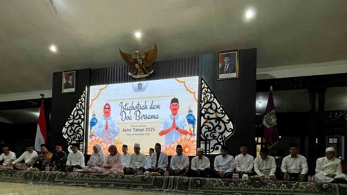 TROBOS.CO | LUMAJANG – Pemerintah Kabupaten (Pemkab) Lumajang mengawali penutupan tahun 2025 dengan khidmat. Rabu (31/12/2025) malam, digelar Doa Bersama Akhir Tahun 2025 di Pendopo Kabupaten, yang dihadiri seluruh pimpinan daerah (Forkopimda), tokoh agama, tokoh masyarakat, dan kepala organisasi perangkat daerah (OPD).