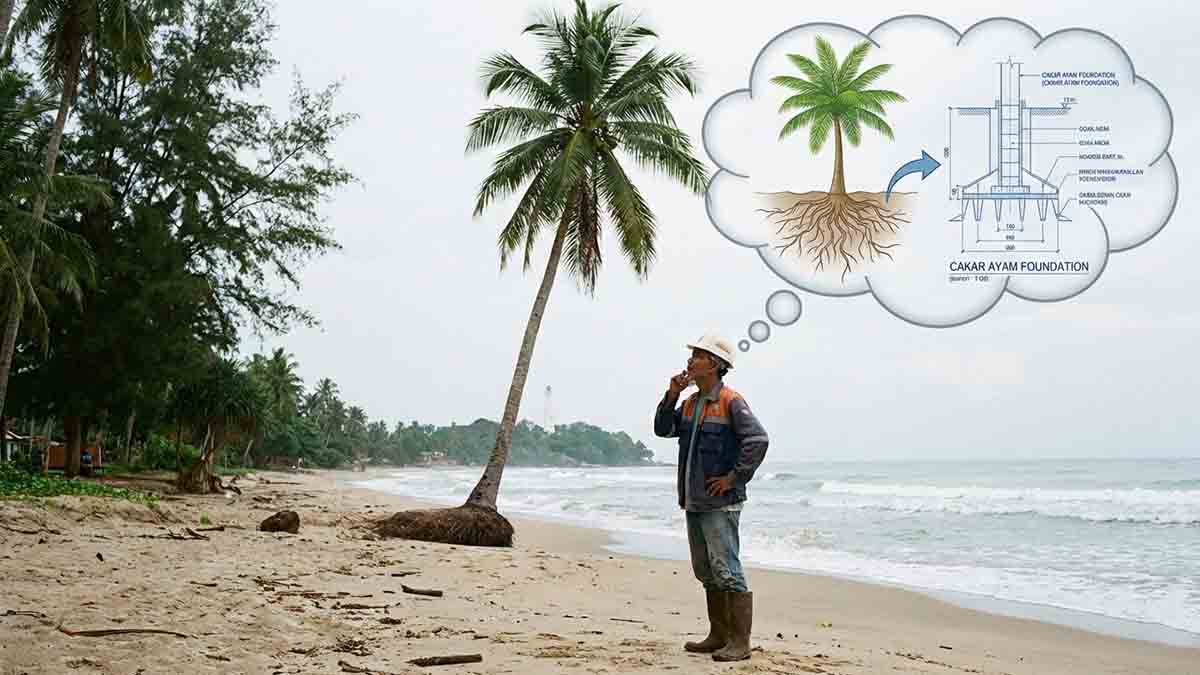 Di sini, kemampuan memahami hubungan sebab-akibat muncul tanpa proses berpikir panjang. Intuisi menjembatani rasa dan akal, sehingga mulai terlihat pola yang melampaui teori baku. Intuisinya: “Jika akar kelapa bekerja sebagai sistem kaku yang menyebar, mengapa pondasi tidak bisa dirancang seperti itu?”