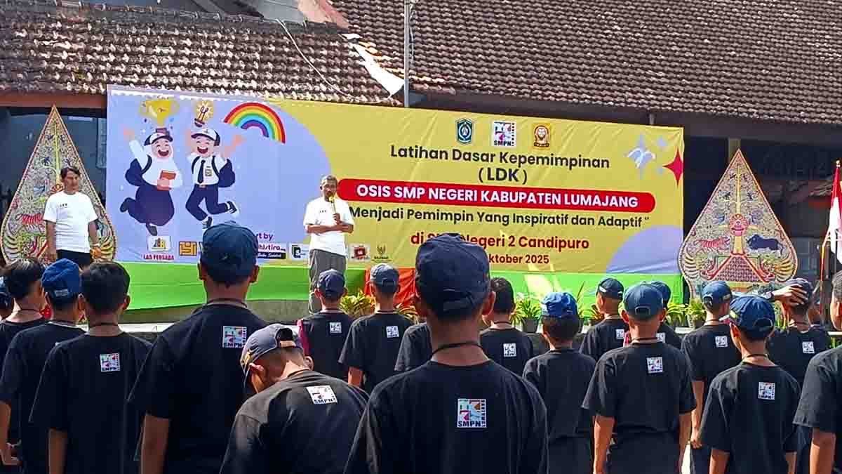 TROBOS.CO | Lumajang – Musyawarah Kerja Kepala Sekolah (MKKS) SMP Negeri Kabupaten Lumajang menggelar Latihan Dasar Kepemimpinan (LDK) OSIS bagi pengurus OSIS SMP Negeri se-Kabupaten Lumajang. Kegiatan berlangsung di SMP Negeri 2 Candipuro, Jumat–Sabtu, 10–11 Oktober 2025, dengan diikuti 160 peserta dari berbagai sekolah.